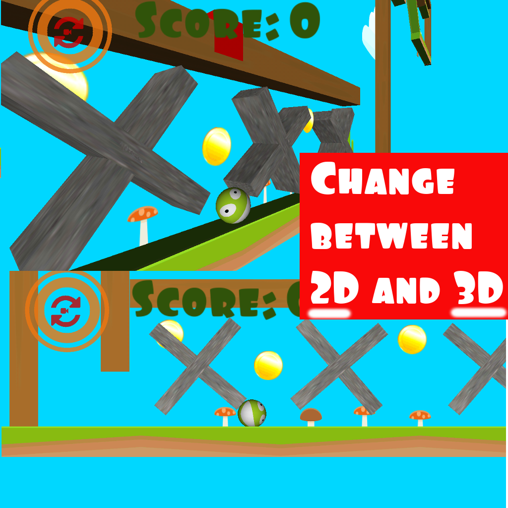 Rollme the ball is fun 2D/3D Puzzle solving platform game where your goal is to help Rollme find his way back home. You can switch between 2d and 3d worlds anytime you want. You can use this to solve puzzles and help you complete levels.