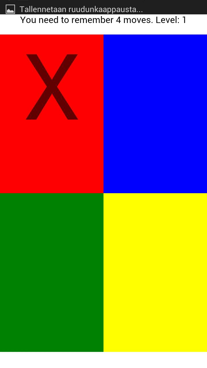 * Android alustalle muistipeli jossa tarkoituksena muistaa värit esitetyssä järjestyksessä
